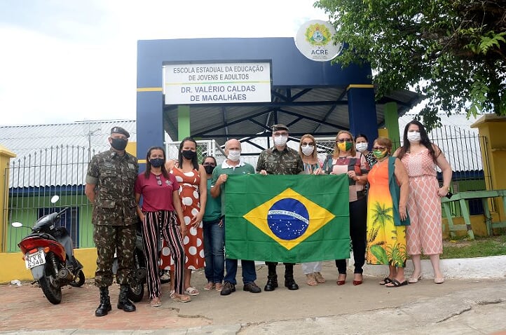 O general contou muitas histórias vivenciadas nas quatro escolas. “Fui alfabetizado na escola João Kubitschek, no ano de 1977. Na segunda série, hoje o 3º ano do fundamental, eu tinha minha avó, dona Cândida Lima, como professora”. Entre as conversas, aproveitou a visita para presentear as escolas com a bandeira brasileira.