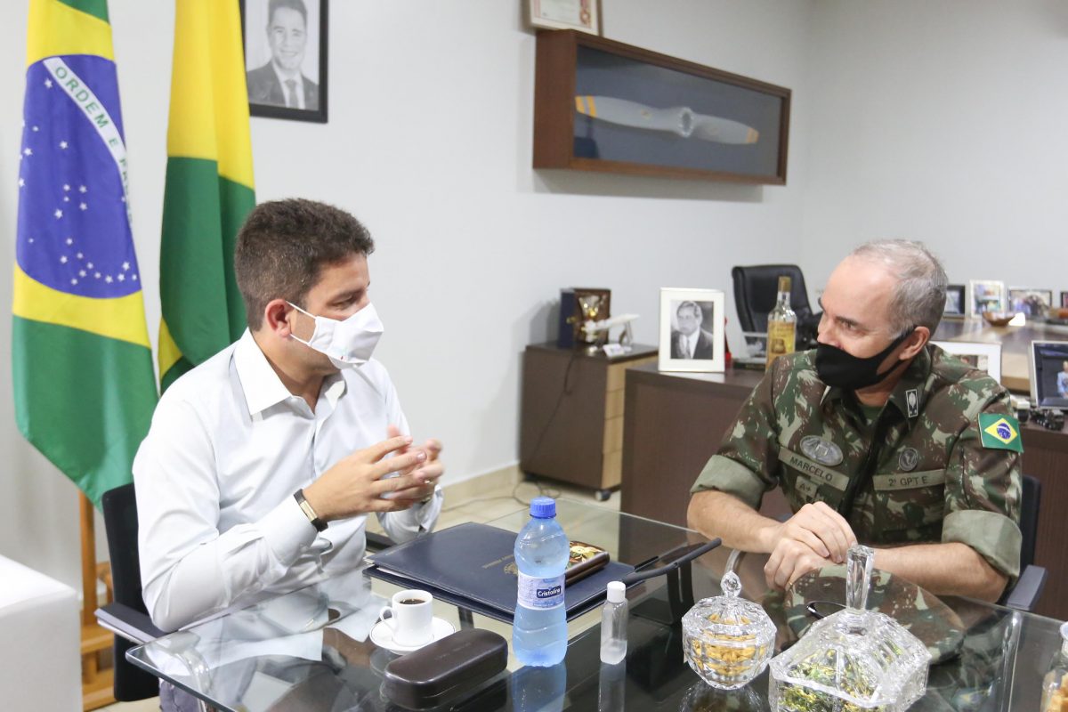 O governador Gladson Cameli se reuniu na manhã desta quinta-feira, 26, com o comandante do 2º Grupamento de Engenharia do Exército, sediado em Manaus (AM), general de Brigada Marcelo Pereira Lima de Carvalho, para tratar de questões relacionadas a parcerias para investimentos na área de infraestrutura.