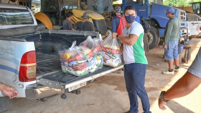 Nesta semana, a Secretária Chefe de Gabinete, Delcimar Leite, e o Secretário Municipal de Obras Mauri Barbosa, entregaram diversas cestas básicas aos servidores da secretaria de obras e às famílias inclusas no CAD Único das comunidades rurais e das vilas. Delcimar Leite participou da entrega dos sacolões para mais de 180 famílias na vila São Pedro.