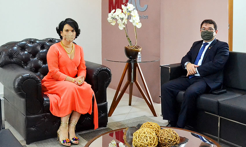A procuradora-geral de Justiça do Ministério Público do Estado do Acre (MPAC), Kátia Rejane de Araújo Rodrigues, recebeu na última sexta-feira, 13, o Ouvidor-nacional do Ministério Público, conselheiro Oswaldo D’Albuquerque Lima Neto. A agenda foi para tratar sobre a instalação de um canal especializado no atendimento de demandas relativas a violência contra a mulher, no MPAC.