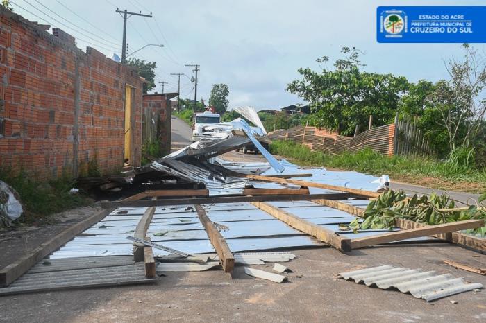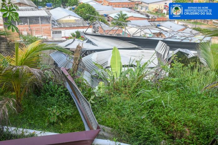 Na manhã desta segunda-feira, 09, o Prefeito Clodoaldo Rodrigues visitou junto com a equipe da Defesa Civil os locais atingidos pela ventania registrada no último domingo, 08, em Cruzeiro do Sul. Além da creche Beija-Flor, pelo menos 50 residências foram danificadas com a tempestade.