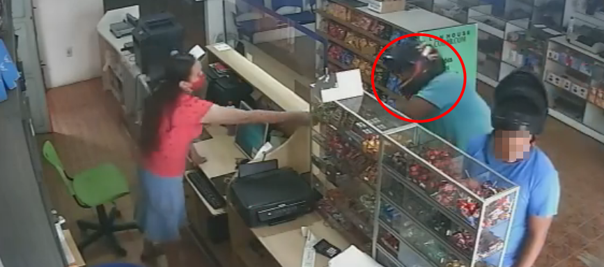 O assaltante entrou no estabelecimento armado e levou o dinheiro do caixa e o celular do cliente. Segundo as investigações, o jovem de 22 anos agiu em parceria com um comparsa, que não aparece no vídeo.