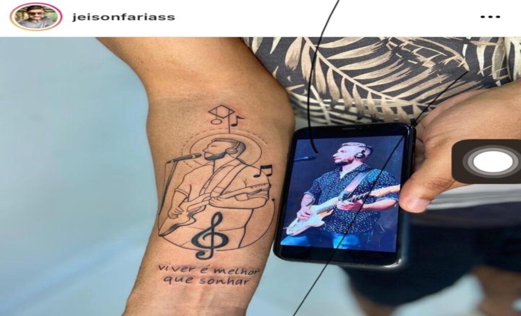 O advogado Jeison Farias publicou em rede social uma homenagem feita por ele ao amigo, cantor e radialista, Giovanni Accioly, vítima de um acidente de trânsito em novembro deste ano. O operador do Direito fez uma tatuagem no braço com a imagem de Accioly.