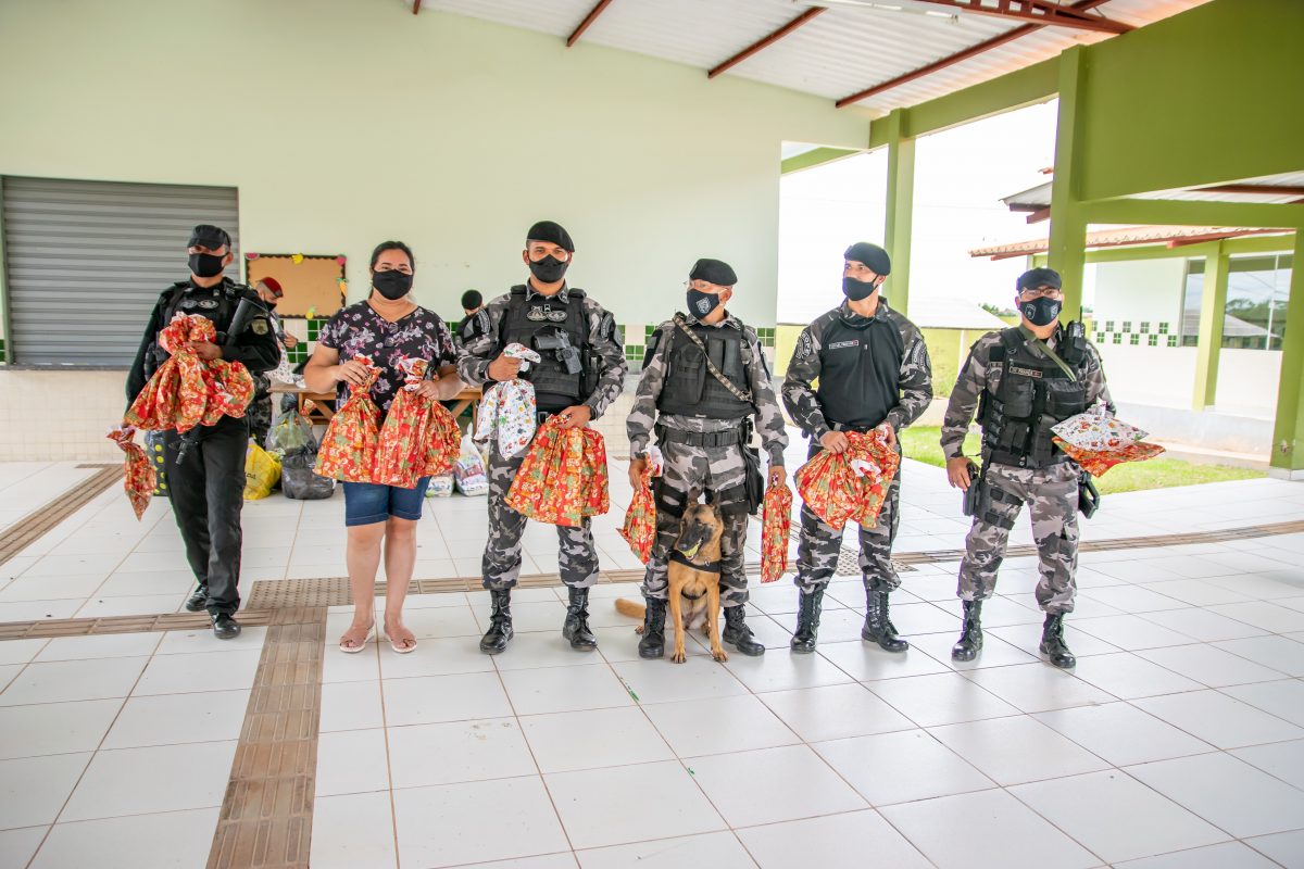 O Batalhão de Operações Especiais (Bope), da Polícia Militar do Acre (PMAC) realizou a entrega de cestas básicas e brinquedos na Escola Iracema Gomes Pereira, no bairro Jequitibá. O evento contemplou mais de 170 famílias da comunidade, mas devido à pandemia, apenas 50 foram convidadas a ir escola para evitar aglomeração.