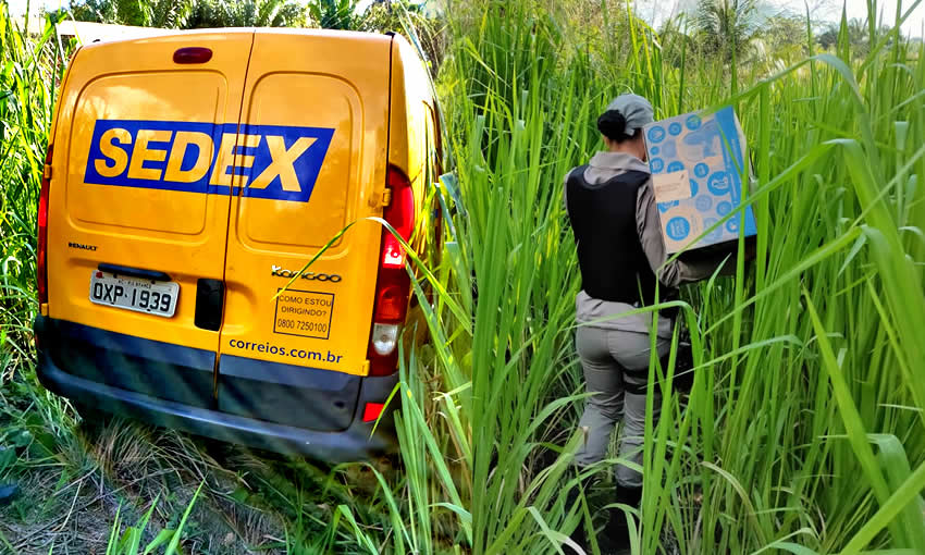 Criminosos rendem funcionário dos Correios, roubam veículo e fazem arrastão nas entregas