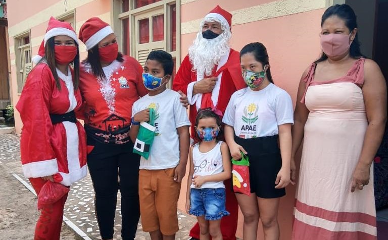 Pensando em driblar o isolamento social por conta da pandemia, professores e funcionários da APAE Cruzeiro do Sul estão levando o Natal para a casa dos alunos.