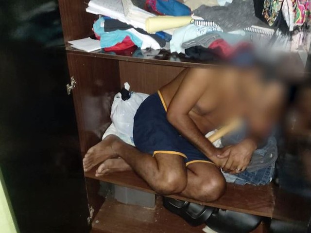 De acordo com a Polícia Civil, o homem tentou se esconder no guarda-roupas quando a polícia chegou na casa para cumprir o mandado de prisão, mas ele foi encontrado.