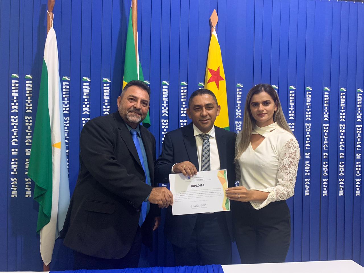 O Prefeito eleito de Porto Walter, César Andrade e o Vice-prefeito Guarsonio Melo, foram diplomados pela Justiça Eleitoral na tarde desta quarta-feira,16, durante solenidade online. O ato de diplomação proporciona ao prefeito o reconhecimento da justiça, com a validação dos votos diante do processo eleitoral.
