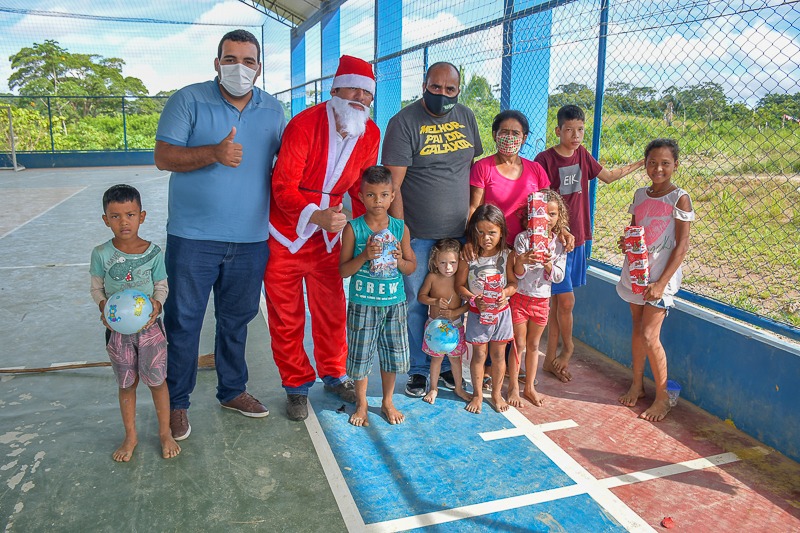 Em comemoração ao Natal, o Prefeito Clodoaldo Rodrigues realizou na última semana a entrega de brinquedos para crianças da zona rural do município, nas Vilas Santa Luzia, Santa Rosa, São Pedro, Assis Brasil, Liberdade e Pentecostes. Mais de 3 mil presentes foram adquiridos e distribuídos entre as crianças. A festa contou com a presença do Papai Noel, que levou alegria durante a festa natalina. Clodoaldo esteve presente em cada um dos locais, participando da entrega dos brinquedos.