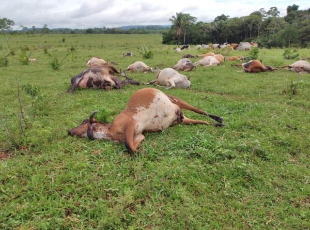Na madrugada da última quinta-feira (24) um raio caiu em uma propriedade rural de Ouro Preto do Oeste (RO) e matou 25 cabeças de gado, sendo 18 vacas leiteiras e sete bezerros.