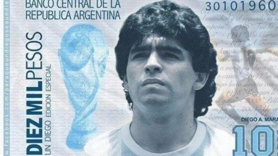 A ideia inicial era de que fosse lançada uma nota de 10 mil pesos (620 reais), em homenagem à camisa 10 de Diego, mas o governo tem evitado lançar notas de maior valor por conta da inflação. Atualmente, a nota de mil pesos é ilustrada pela ave joão-de-barro.