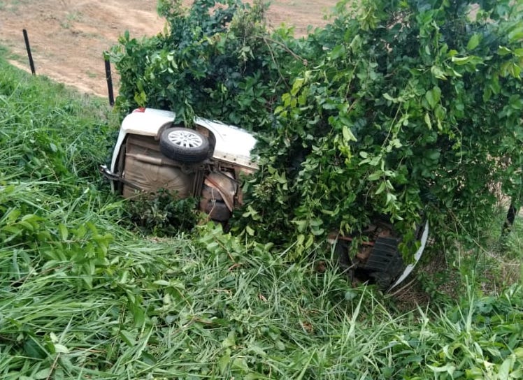 Taxi perde controle ao tentar ultrapassagem na BR 317 e cai em barranco