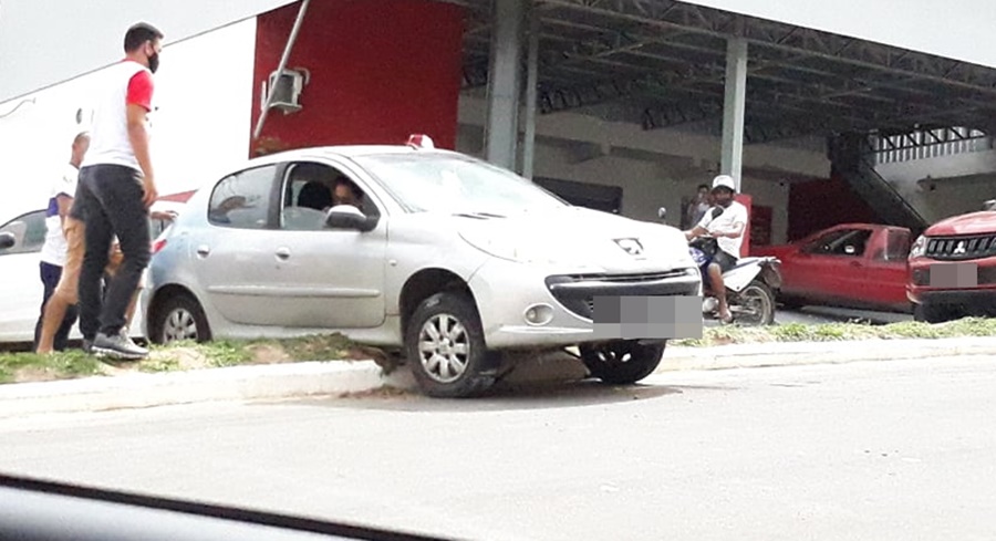 Nas imagens, é possível perceber que o motorista conscientemente, tenta passar por cima do canteiro, mas devido ter o veículo baixo, acabou ficando “entalado” em meio a obra.