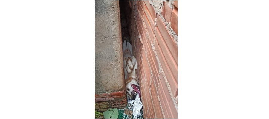 Os donos de Laika, moradores do bairro BNH 1, perceberam o sumiço do animal na sexta-feira (1°) e, ao procurarem pelo quintal, perceberam que a cadela estava presa entre duas estreias paredes de concreto.