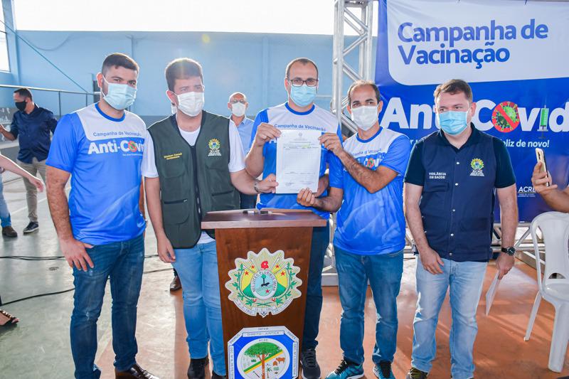 Cruzeiro do Sul viveu nesta terça-feira, 19, um dia histórico, com a chegada da vacina contra o Covid-19. O lançamento da campanha de imunização ‘Anti-Covid: Por uma Cruzeiro do Sul feliz de novo!’, aconteceu no final da tarde, no Poste Saúde Mão Amiga, com a vacinação das seis primeiras pessoas do grupo prioritário. O Prefeito Zequinha Lima recebeu o primeiro lote de vacinas das mãos do Governador Gladson Cameli.