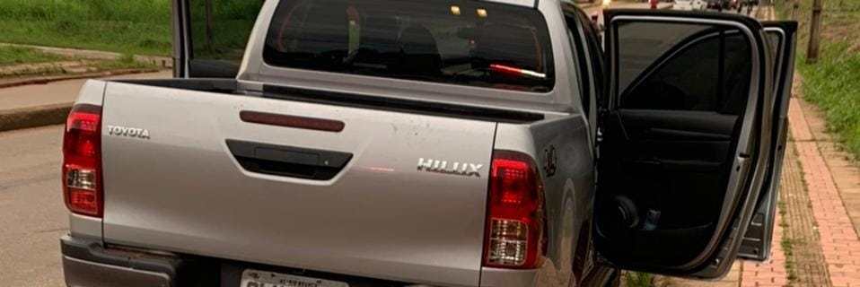 Os infratores abordaram o veículo no momento em que as vítimas saiam da residência no bairro Placas, se apropriaram de dinheiro, celulares, objetos pessoais e levaram a caminhonete com duas pessoas da família como reféns.