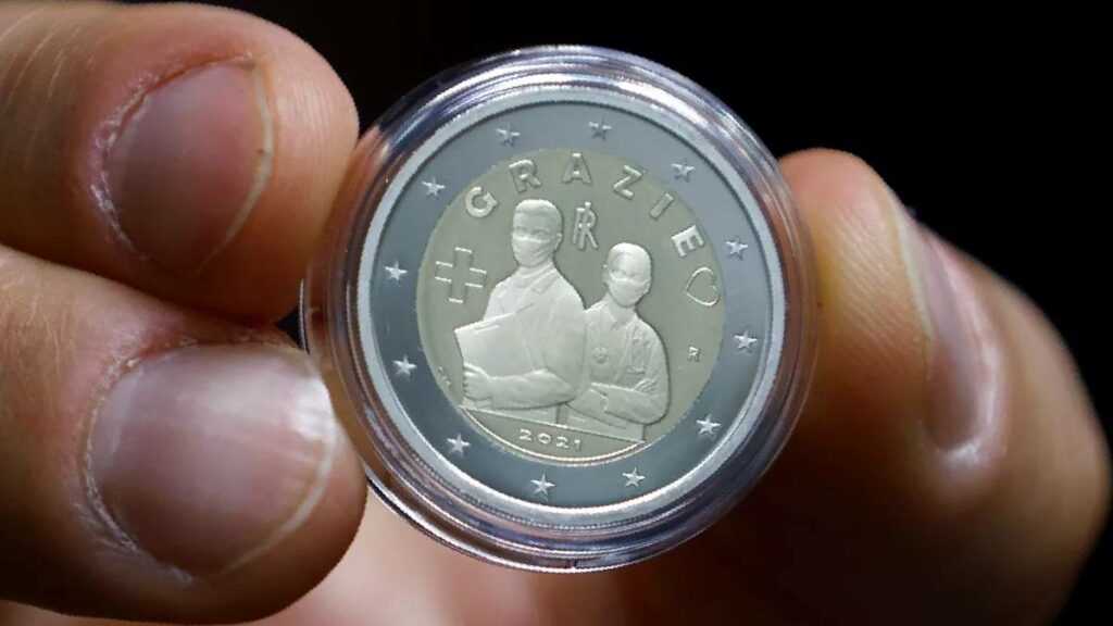 A Itália colocará em circulação uma moeda comemorativa de 2 euros em homenagem aos profissionais da saúde.