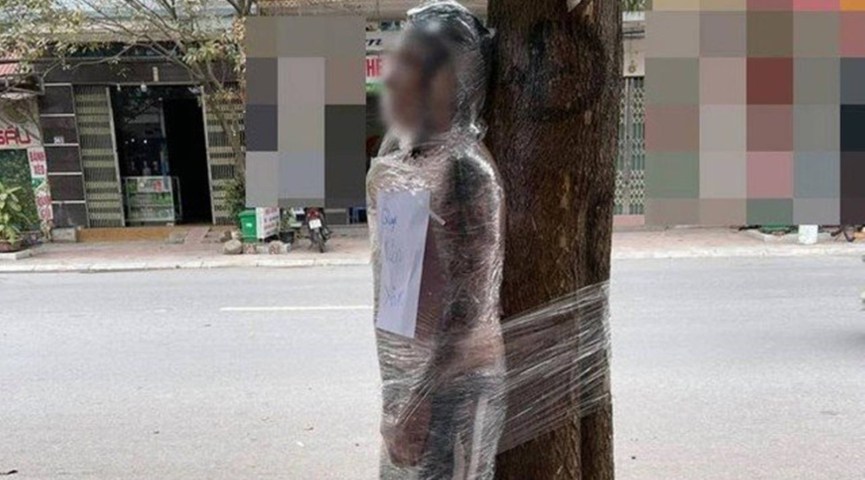Um jovem foi amarrado com filme plástico a uma árvore em Hanói (Vietnã) após, segundo postagens que recentemente viralizaram nas redes sociais do país asiático, não pagar por uma tatuagem feita em um estúdio identificado como NQT, na capital vietnamita.