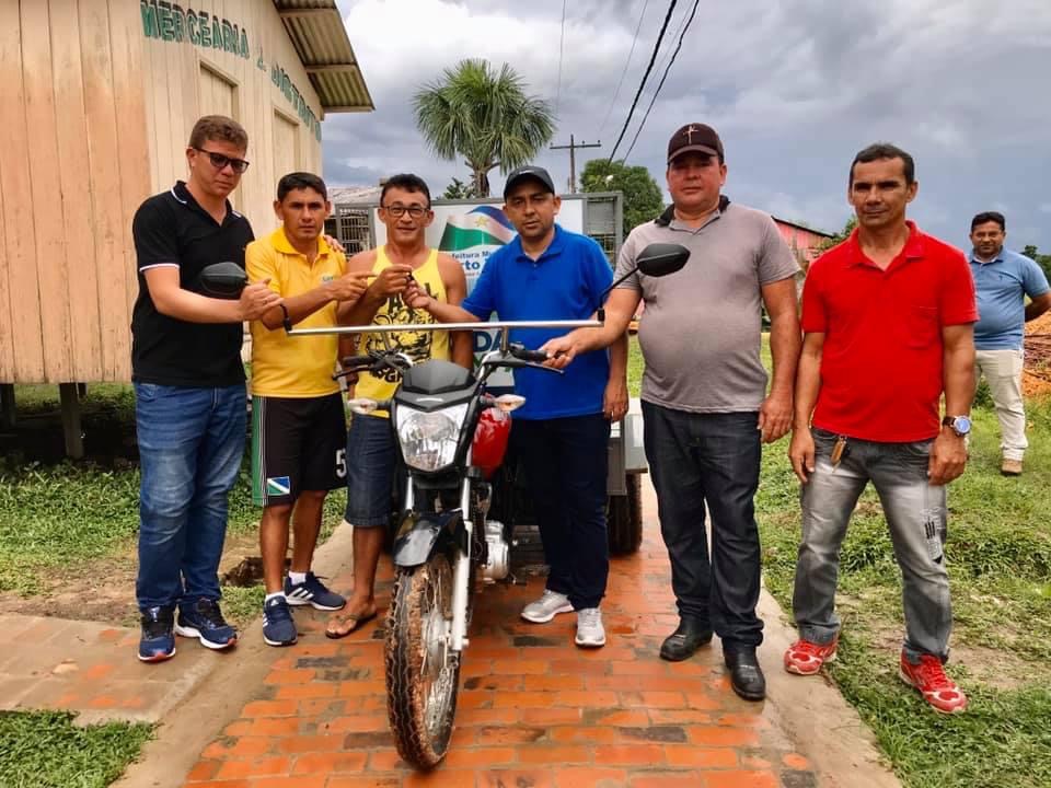 O prefeito e o vice, acompanhados dos vereadores Beliarte, Rosildo, Zé do Luca, e do diretor de limpeza, Zé Maria Branco, fizeram a entrega de uma moto coletora para a comunidade. O veículo será usado na coleta seletiva de lixo do Programa Cidade Limpa.