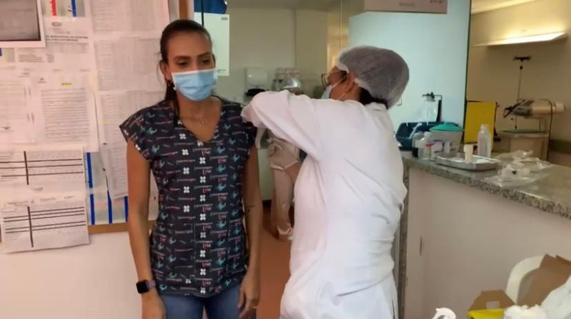 Luana Melo, técnica de enfermagem e servidora do Instituto, recebeu a vacina no último dia 20, um dia após a entrega do primeiro lote em Rio Branco da vacina produzida pelo o Instituto Butantan.