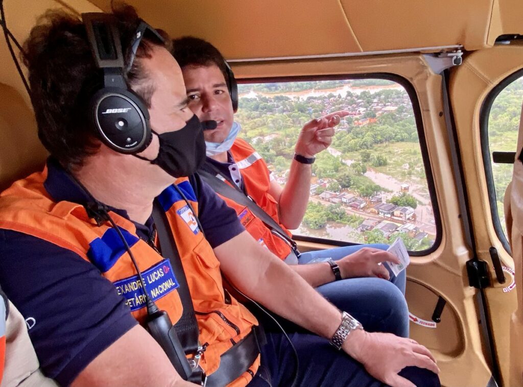Para verificar a situação, o governador Gladson Cameli, o secretário Alexandre Alves e comandante do Corpo de Bombeiros, coroenel Carlos Batista, realizaram um sobrevoo nas principais áreas atingidas em Rio Branco. Do alto, as autoridades tiveram a dimensão das comunidades afetadas.