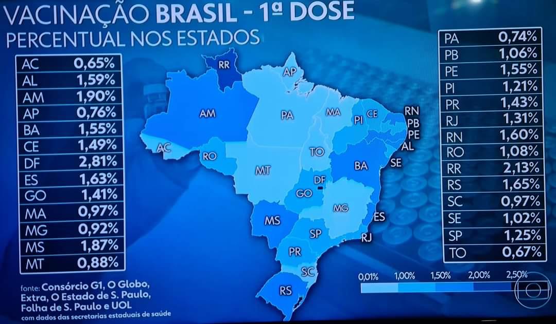 Os dados do Consórcio de veículos de imprensa, orientados a partir de dados das secretarias estaduais de Saúde, aprontam que o Acre foi o estado que menos vacinou contra a Covid-19.