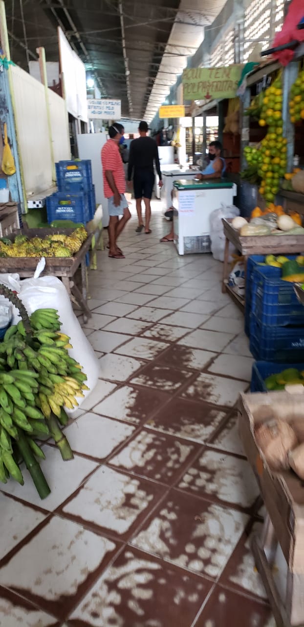 No mercado das verdureiras, o funcionamento é parcial; com boxes intercalados. Nas barracas de atendimento bancário, a quantidade de pessoas era menor, quando comparado ao que foi registrado na última segunda-feira.