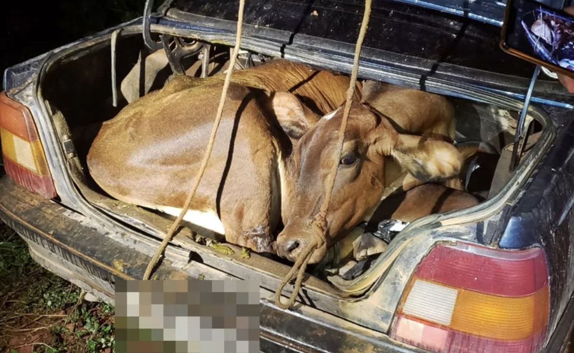 Bezerro e novilha são encontrados amarrados dentro de carro após furto