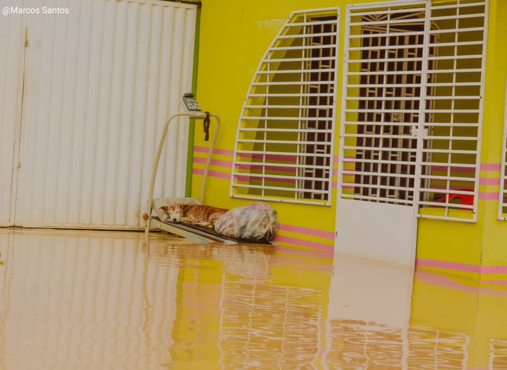 Além das pessoas atingidas pela enchente do Rio Juruá, outra população que sofre é a de animais. Cães e gatos são abandonados e deixados para trás.