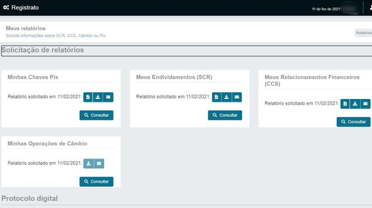 Entre no site do Registrato. Na manhã desta quinta-feira (11), o site apresentava instabilidade, mas a reportagem do UOL conseguiu acessá-lo após algumas tentativas e emitir todos os relatórios.