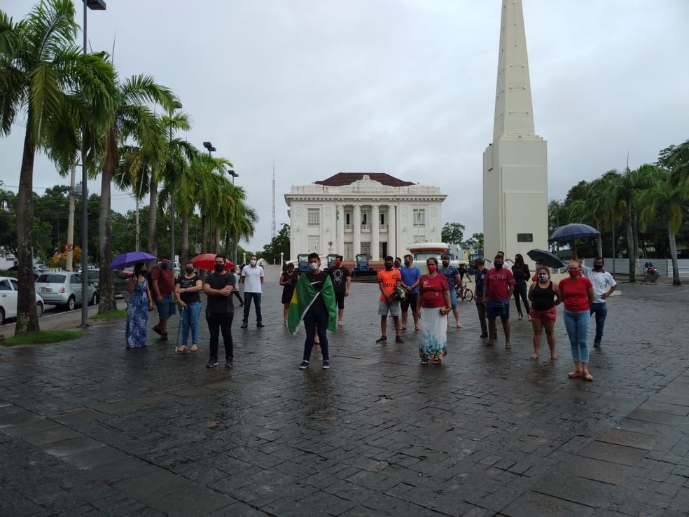 Um grupo de pequenos comerciantes do Centro da capital acreana protestou, nesta quarta-feira (3), em frente ao Palácio Rio Branco contra o fechamento do comércio após a reclassificação de todas as regionais do estado para a bandeira vermelha, de emergência. Eles pedem que o governo reconsidere a situação dos pequenos empresários que vivem das vendas diárias.
