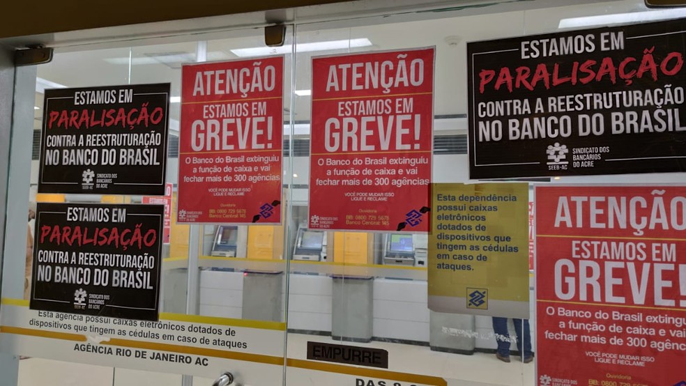 Os funcionários do Banco do Brasil paralisaram parcialmente por 24h os atendimentos nas agências do Acre, nesta quarta-feira (10), em protesto contra a reestruturação anunciada pelo banco que prevê o fechamento de agências e a demissão voluntária.