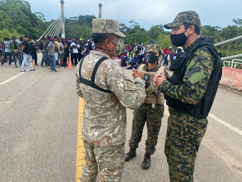 Diante da situação de imigrantes, em sua grande maioria haitianos, que se instalaram na Ponte da Integração, entre o Brasil e o Peru, nas cidades de Assis Brasil e Iñapari, o Governo do Estado do Acre, por meio da Secretaria de Justiça e Segurança Pública (Sejusp), deslocou para o local o Grupo Especial de Fronteiras (Gefron). Quatro viaturas estão à disposição para garantir o policiamento da fronteira com 16 operadores da segurança pública.