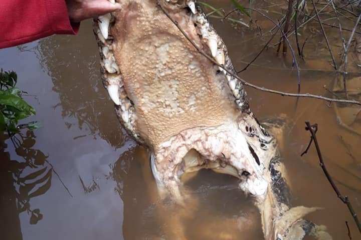 Um pescador cujo nome não foi revelado abateu na tarde de terça-feira (23), um jacaré nas águas do Igarapé Cafezal, em Sena Madureira.