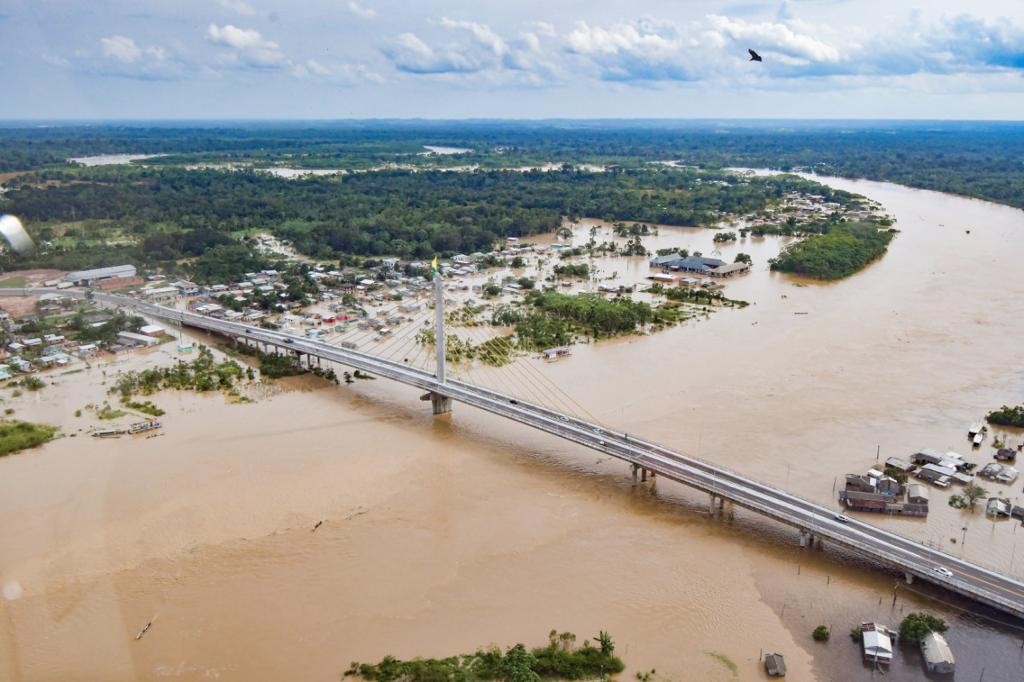 O rio Juruá em Cruzeiro do Sul saiu da marca dos 14,33 m, às 6h, para 14,32 m, na medição de 9h deste sábado, 20.