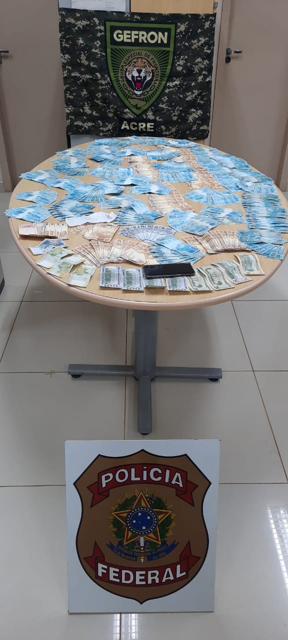 Com o suspeito ainda foram apreendidos dólares, soles peruano e uma quantia de R$ 60 mil em espécie. O flagrante foi feito pelo Grupo Especial de Fronteiras (Gefron).