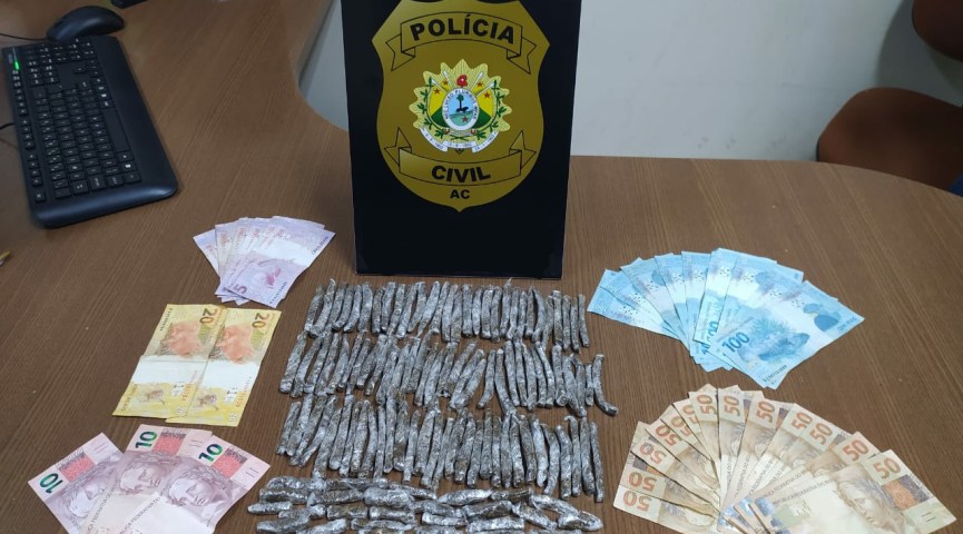 Durante a ação da Polícia Civil duas pessoas foram presas em flagrante em posse de 141 barras de maconha além de R$ 1.660,00 (mil seiscentos e sessenta reais) oriundo da venda do entorpecente.