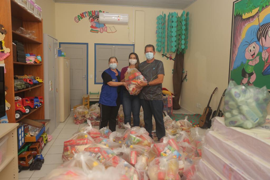 Durante a visita, a Secretaria de Estado de Assistência Social, dos Direitos Humanos e de Políticas para as Mulheres entregou cestas básicas, kits de limpeza, sabonetes e 1500 máscaras reutilizáveis para auxiliar na manutenção dos abrigos e aos moradores desabrigados.