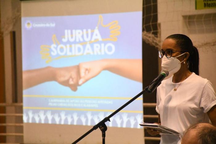 Idealizada pela primeira dama de Cruzeiro do Sul Lurdinha Lima, a Campanha Juruá Solidário foi lançada na quarta-feira, 17, com apoio de diversas instituições. A ação visa prestar apoio às famílias afetadas pela enchente do Rio Juruá e dos seus afluentes, através da arrecadação de donativos para serem distribuídos às famílias nos abrigos. A Prefeitura de Cruzeiro do Sul, que já presta apoio aos desabrigados desde o início da enchente, entra como principal apoiadora da ação social. Mais de 115 famílias estão alojadas em abrigos e outras 600 na casa de familiares.