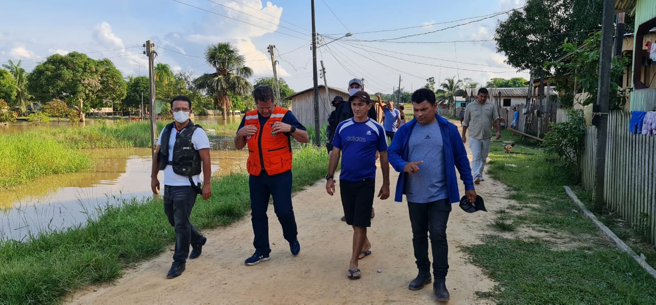 A comitiva foi conferir as dificuldades que as comunidades estão enfrentando devido a enchente dos rios. O deputado e vice-governador aproveitaram para entregar cestas básicas para as famílias.