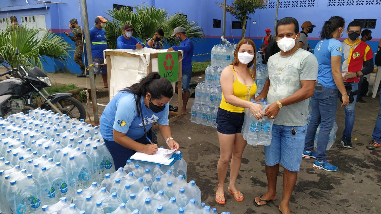 Ainda foram distribuídos mais de 100 fardos de água mineral.