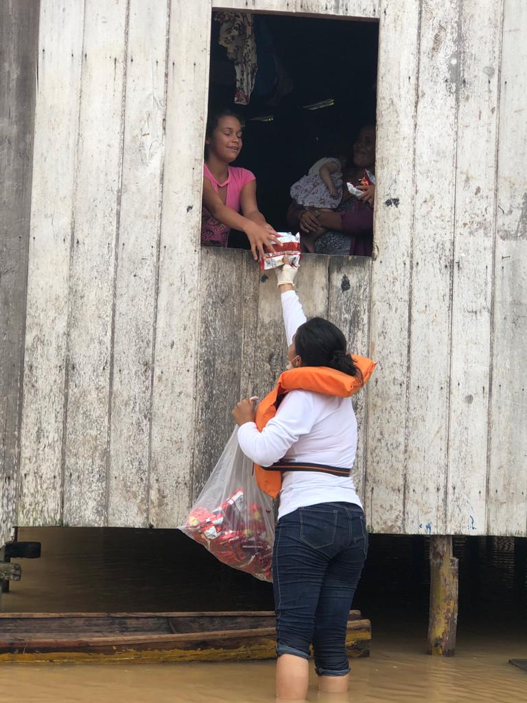 As vereadoras Paula Paixão (MDB) e Therezinha Fernandes (PCdoB) realizaram na última terça-feira, 16, uma ação solidária em comunidades ribeirinhas de Rodrigues Alves. Foram entregues cerca de 40 cestas básicas.