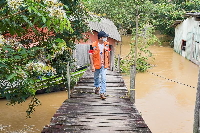 O prefeito Zequinha Lima e o vice prefeito Henrique Afonso visitaram na tarde de domingo,14, as famílias atingidas pela cheia do Rio Liberdade, na BR-364, em Cruzeiro do Sul. No local a Defesa Civil Municipal e as demais equipes da prefeitura realizam a remoção dos moradores que tiveram suas residências atingidas pelas águas e prestam a assistência necessária.