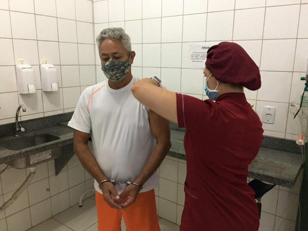 Detentos com mais de 60 anos e profissionais de saúde são vacinados em presídio da capital
