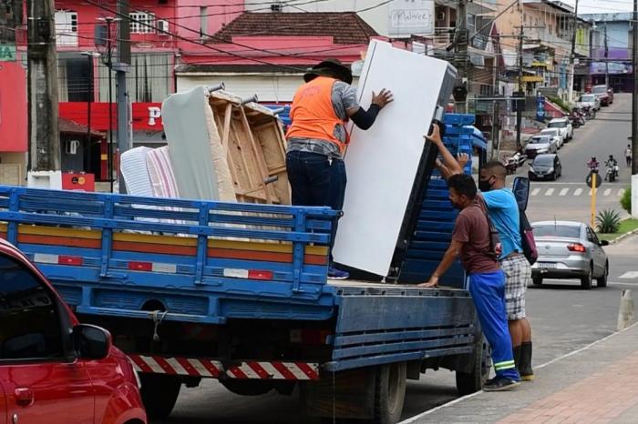 Esta será a quinta viagem do dia de José Claudio, da Defesa Civil, cada viagem levando as mudanças de duas ou até três famílias.