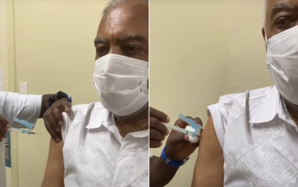 O cantor e compositor baiano Gilberto Gil, publicou nesta sexta-feira (12), nas redes sociais, o momento em que ele foi vacinado contra a Covid-19, em Salvador.