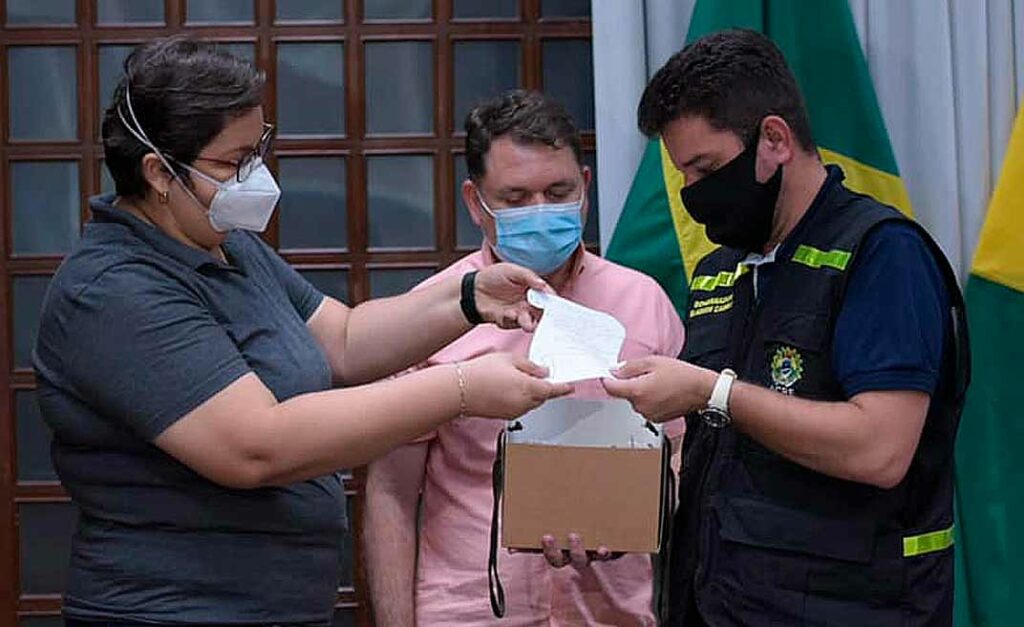 Nas redes sociais, Cameli mostrou a lembrança que recebeu das mãos da diretora de Assistência da Sesacre. Ele estava com o secretário de Saúde, Alysson Bestene, na Casa Civil. “Ele [Armando] esteve internado no Into, por conta da Covid-19, e graças a Deus conseguiu vencer essa batalha”, destacou.