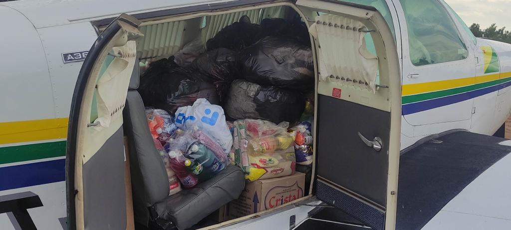 Na campanha foram arrecadados mais de uma tonelada de alimentos, material de limpeza, água mineral e roupas, e para garantir a entrega desses materiais, foi utilizada a aeronave Harpia 05, do Estado.