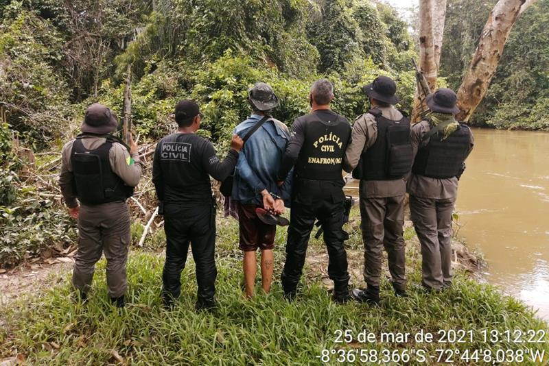 Um trabalho conjunto entre das Polícias Civil e Militar na tarde da última quinta-feira, 25, resultou na prisão de R. D. G, 24 anos, na comunidade ribeirinha Esperança, no Rio Grajaú, município de Porto Walter.