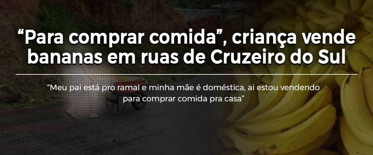 Na tarde da última segunda-feira (8), uma criança de 13 anos de idade foi flagrada, vendendo bananas em um carro de mão, por algumas ruas do bairro da Cohab em Cruzeiro do Sul. Questionado por nossa equipe de reportagem, o garoto relatou estar trabalhando para comprar comida.